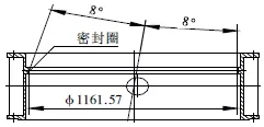 閥體起密封作為的為密封圈,焊接在閥體內(nèi)(圖5)。在2.5m立車(chē)上將組焊好的閥體裝夾在閥體密封圈加工工裝上,將立車(chē)刀桿旋轉(zhuǎn)8°,根據(jù)圖紙?jiān)O(shè)計(jì)要求,找正后沿圓錐母線方向走刀,車(chē)至未焊不銹鋼前的尺寸。然后堆焊不銹鋼,最后將焊好不銹鋼的閥體重新上立車(chē),按上述方法車(chē)閥體密封圈至圖紙要求尺寸。最后在立車(chē)刀架上裝磨頭,對(duì)閥體密封圈進(jìn)行磨削處理,使其達(dá)到圖紙?jiān)O(shè)計(jì)粗糙度要求。