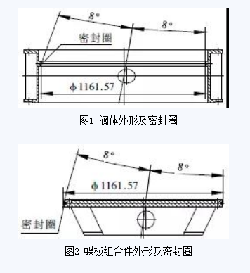 三偏心金屬硬密封蝶閥的密封面是斜錐面,閥體密封圈(圖1)與蝶板組合件密封圈(圖2)的接觸為面接觸,其工作原理是靠驅(qū)動裝置扭力直接帶動蝶板組合件,使蝶板組合件密封圈與閥體密封圈充分接觸后產(chǎn)生彈性變形而密封。三偏心金屬硬密封蝶閥作為一種高性能閥門,具有耐腐蝕性好、密封可靠、開啟力矩小等優(yōu)點。三偏心硬密封電動蝶閥DN1200,其中閥體密封圈材料為1Cr18Ni9Ti,蝶板組合件密封圈材料為復(fù)合的不銹鋼板與石棉板夾層組合件,閥體密封圈與蝶板組合件密封圈的加工質(zhì)量直接決定蝶閥密封性能。