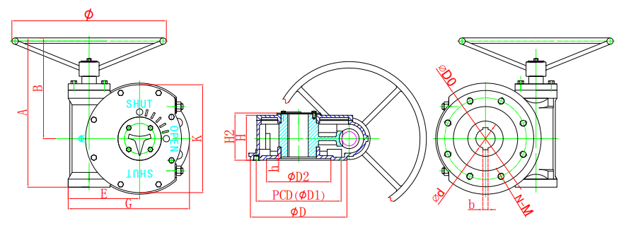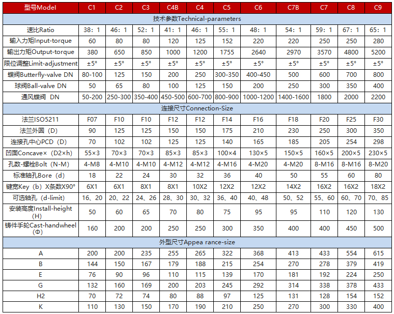 該系列蝸輪箱適用環(huán)境廣、功能全面、形式多樣(有手輪式、手輪帶鎖式、鏈輪式等),產(chǎn)品共有9種型號。